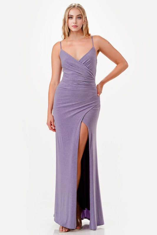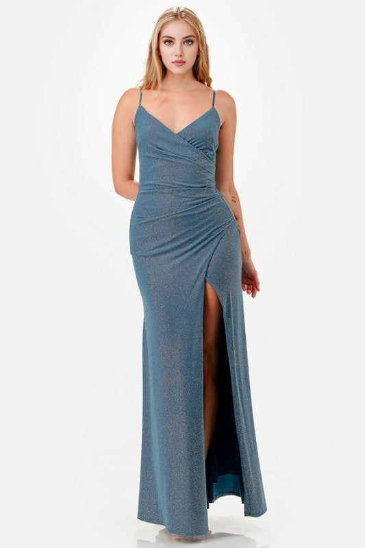 Side-Pleat Glitter Gown