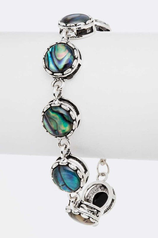 This Abalone Round Link Station Toggle Bracelet is the perfect accessory for any outfit. The beautiful abalone round links provide a unique touch, while the toggle closure ensures a secure fit. Made with high-quality materials, this bracelet is durable and stylish. Elevate your look with this gorgeous piece.