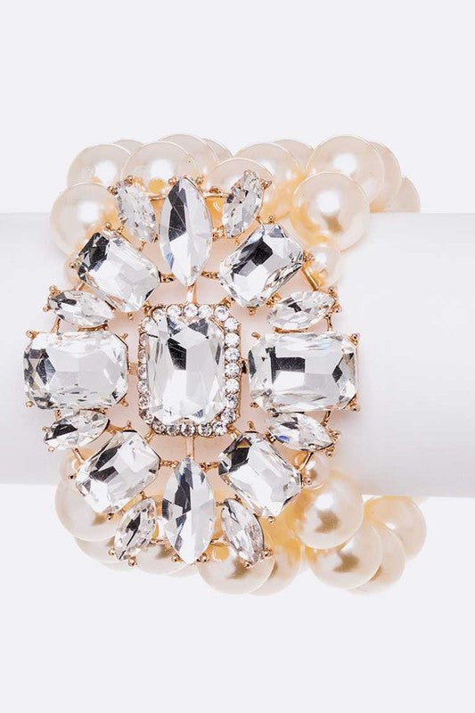 Indulge in timeless elegance with our Crystal Flower Statement Pearl Stretch Bracelet. Featuring a stunning crystal flower design and stretchy pearl band, this bracelet effortlessly adds a touch of glamour to any outfit. Elevate your style with this must-have accessory.
