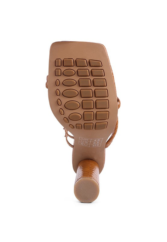 Expertly crafted with crinkled patent PU material, these High Block Heeled Croc Sandals boast a trendy square toe design and elastic strap detail for a secure fit. The TPR outer sole provides traction while the light cushioning ensures comfortable wear. Perfect for adding a touch of sophistication to any outfit.