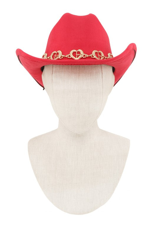 This Fedora Metal Heart Hat is perfect for adding a touch of edgy elegance to any outfit. Made of high-quality materials, it features a stylish metal heart chain accent that sets it apart from traditional fedoras. Elevate your fashion game and make a statement with this unique accessory.