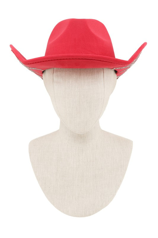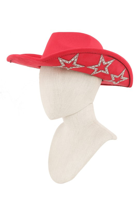 Introducing our Fedora Rhinestone Stars Hat. This stylish fedora features six rhinestone stars accent, adding a touch of glamour to any outfit. With a sleek and sophisticated design, this hat is perfect for any occasion. Embrace a classic look with a touch of sparkle.