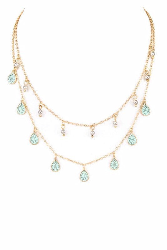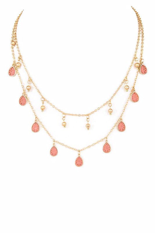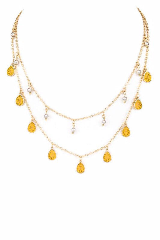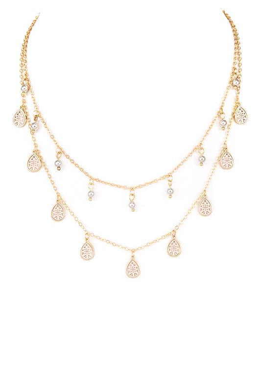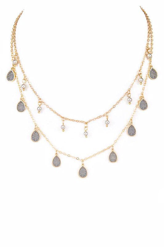 This Fringe Dangle Layered Necklace features a 14" chain with an extension, making it versatile for various necklines. The lobster clasp closure ensures a secure fit while exuding a sophisticated and modern aesthetic. Perfect for elevating any outfit with a touch of elegance.