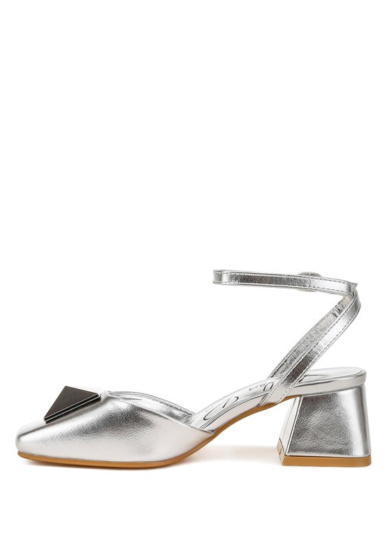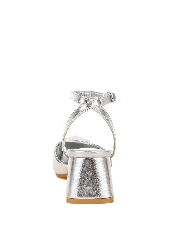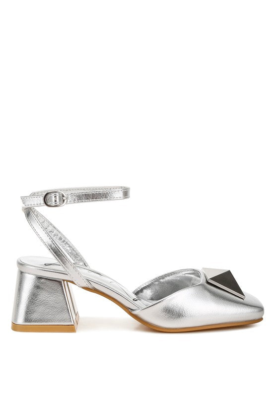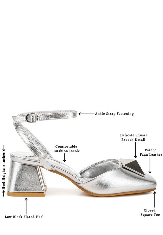 Step out in style with our Brooch Ankle Strap Sandals. These elegant sandals feature a metallic faux leather upper material and a rubber outer sole for added durability. With a closed square toe and low block flared heels, these sandals offer comfort and style. The square brooch detail adds a touch of sophistication, while the ankle strap fastening ensures a secure fit. Complete with a comfortable cushion insole, these sandals are perfect for all-day wear.
