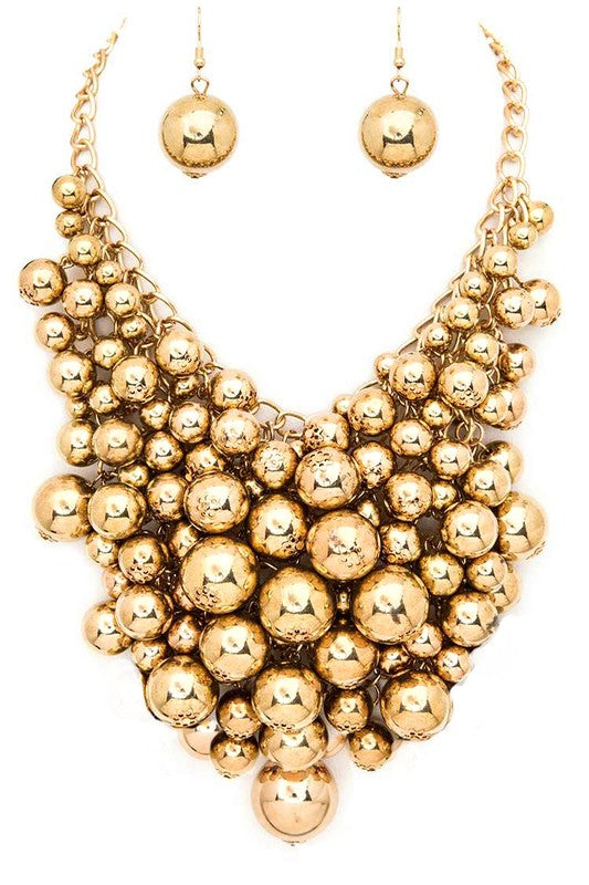 This Cluster Bib Necklace set is the perfect accessory for any outfit. With its stunning cluster design, it adds a touch of elegance and sophistication. Made with high-quality materials, it is durable and long-lasting. Enhance your style and make a statement with this eye-catching necklace.