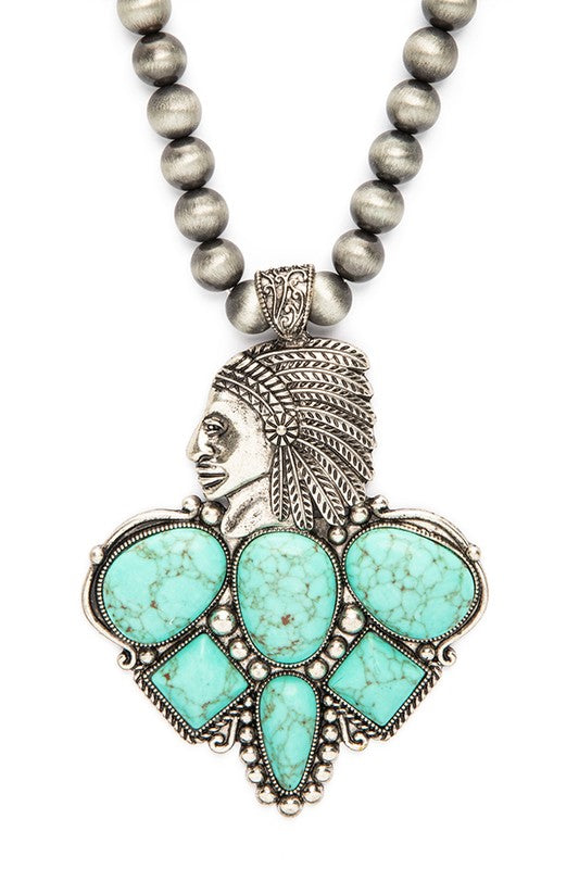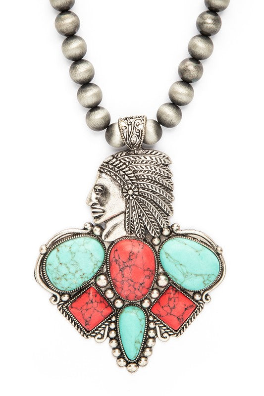 • Mix Stone Pendant Oversize Western Necklace