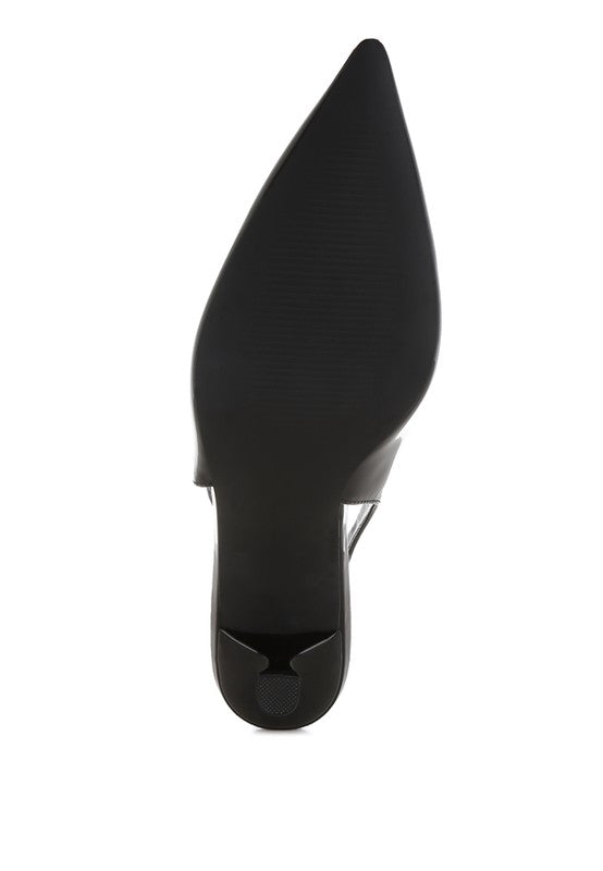 Expertly crafted with a faux leather upper and TPR outer sole, these Kitten Heel Slingback Sandals are both stylish and comfortable. The closed pointed toe, kitten heel, and slingback fastening provide a secure fit, while the elasticated gusset and cushion insole add extra comfort. Perfect for all-day wear.