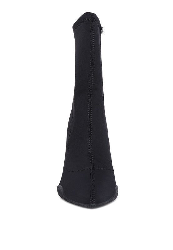 Elevate your style with our Black Stretch Ankle Boots. Made with high-quality PU material and a synthetic lining, these boots offer superior comfort and durability. The pointed toe design and platform block heel will enhance your silhouette. The TPR sole provides extra support, while the lightly cushioned insole and side zipper opening add convenience. Perfect for the modern, fashion-forward fashionista.