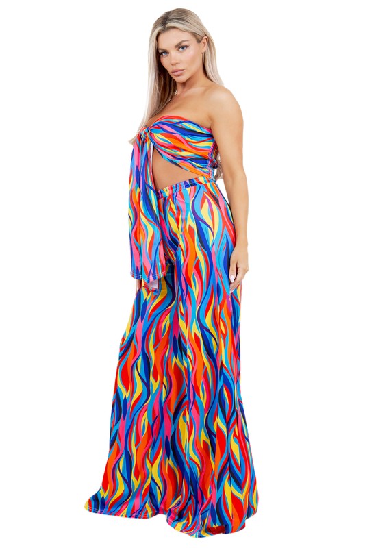Elevate your style with our Women Fashion 2pcs Pants Set. This casual set features a top with a self-wrap style, paired with elastic waist wide leg pants for comfort and versatility. Perfect for a day out or a night in, this set is a must-have for any fashion-forward woman.